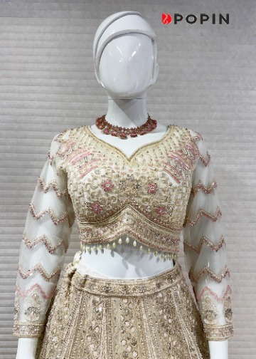 CREAM WITH PINK EMBROIDERED INDO WESTERN CHANIYA CHOLI